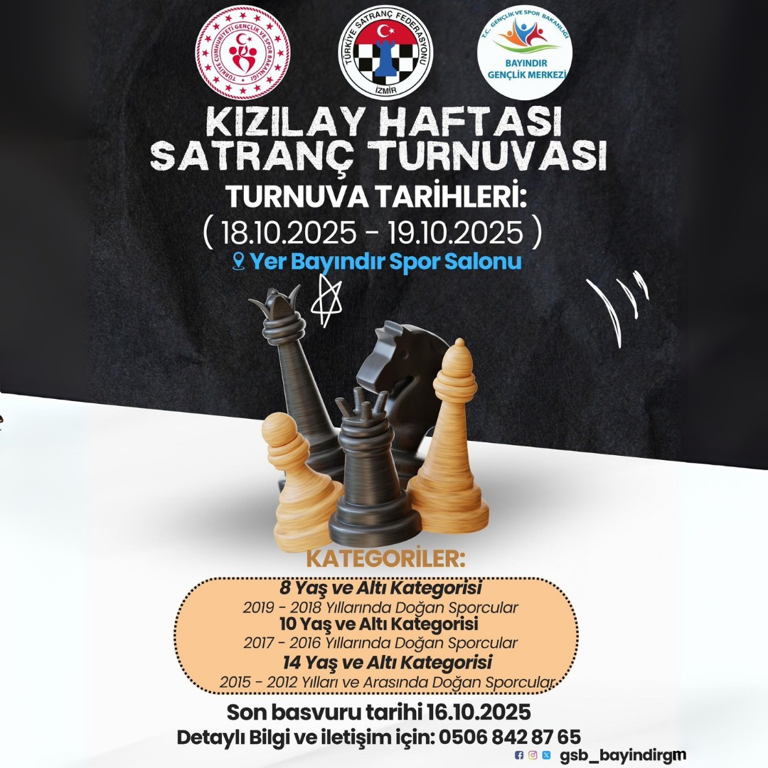 BAYINDIR KIZILAY HAFTASI SATRANÇ TURNUVASI" 18-19 EKİM 2025 TARİHLERİNDE BAYINDIR SPOR SALONU'NDA YAPILACAKTIR