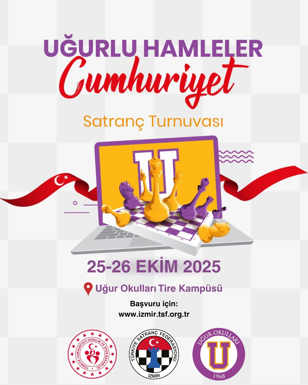 "Uğurlu Hamleler 29 Ekim Cumhuriyet Satranç Turnuvası" 25-26 Ekim 2025 tarihlerinde Uğur Okulları Tire Kampüsü'nde yapılacaktır.