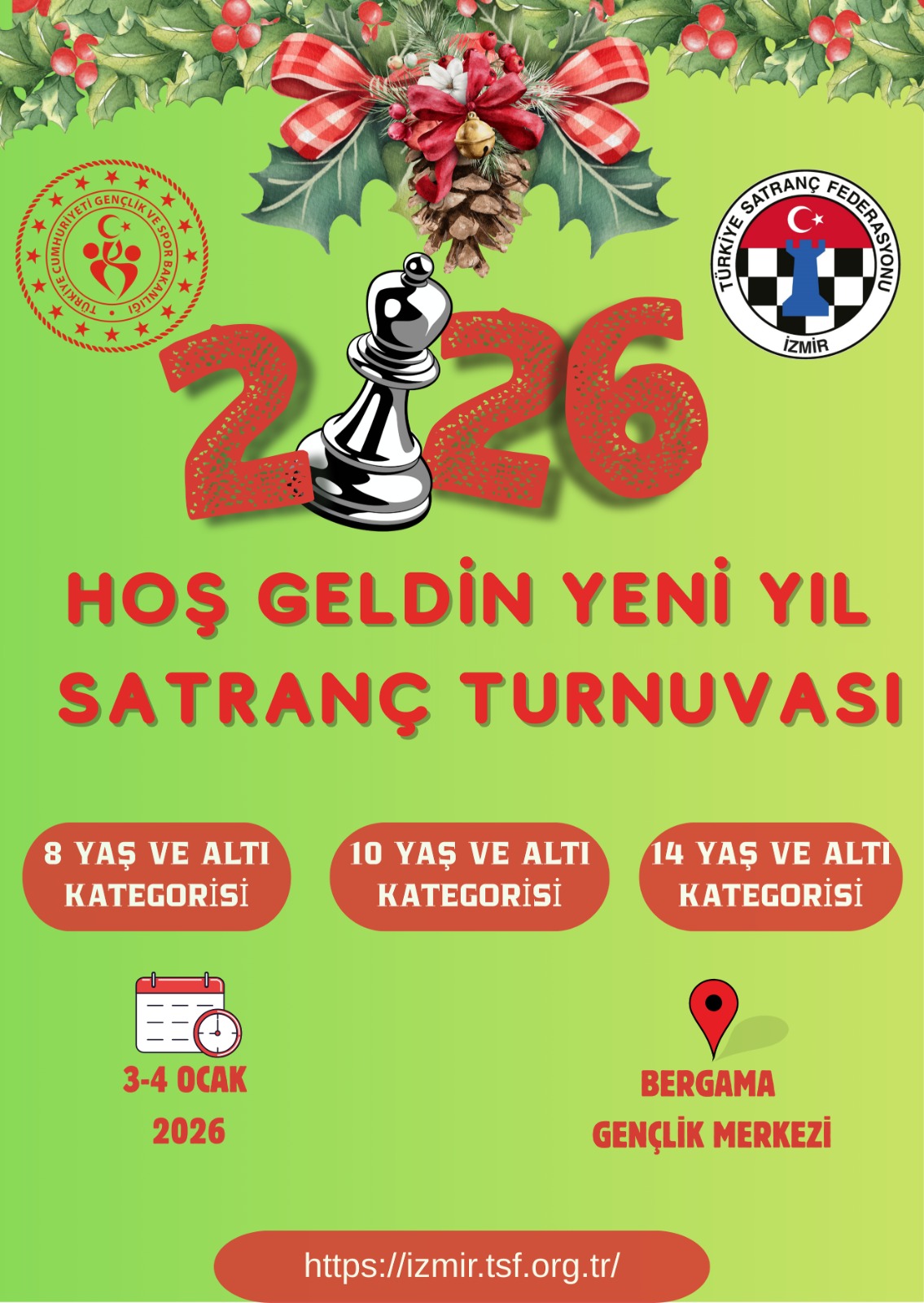 "Hoş Geldin Yeni Yıl Satranç Turnuvası" 3-4 Ocak 2026 tarihlerinde Bergama Gençlik Merkezi'nde yapılacaktır.