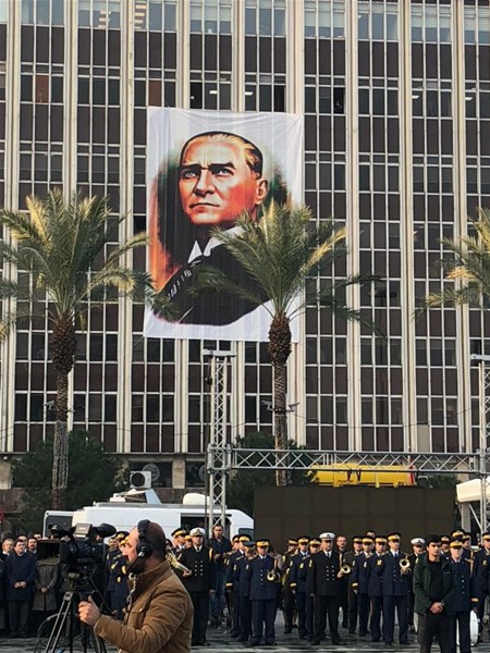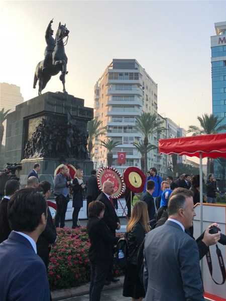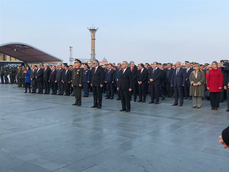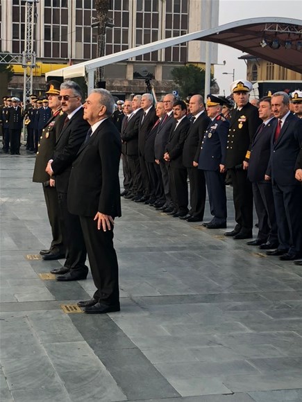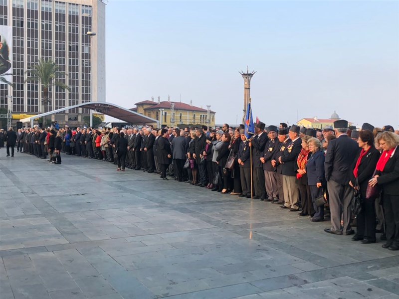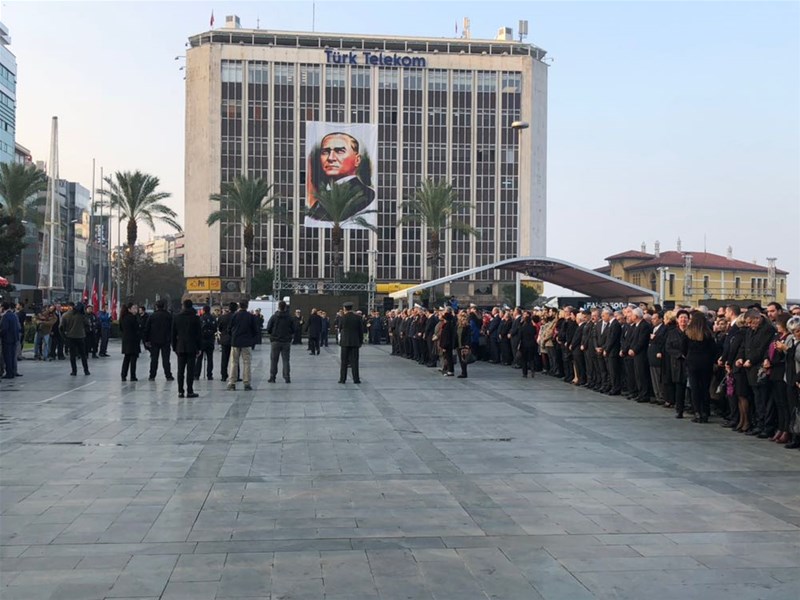 Cumhuriyet Meydanı'na çelenk konulması ile başlayan anma töreni sivil toplum örgütlerinin çelenklerinin sunumunun ardından saygı duruşu, istiklal marşı ve Saat 09.05'te sirenlerin çalması ile birlikte Türkiye Cumhuriyeti'nin kurucusu Büyük Önder Mustafa Kemal Atatürk'ün ebediyete intikalinin 79'ncu yılı anma töreni Cumhuriyet Meydanındaki kısmı sona erdi.