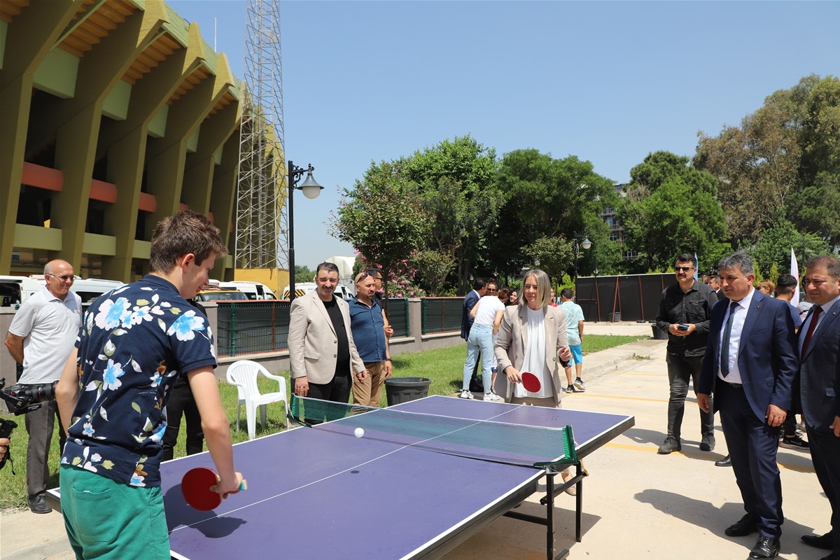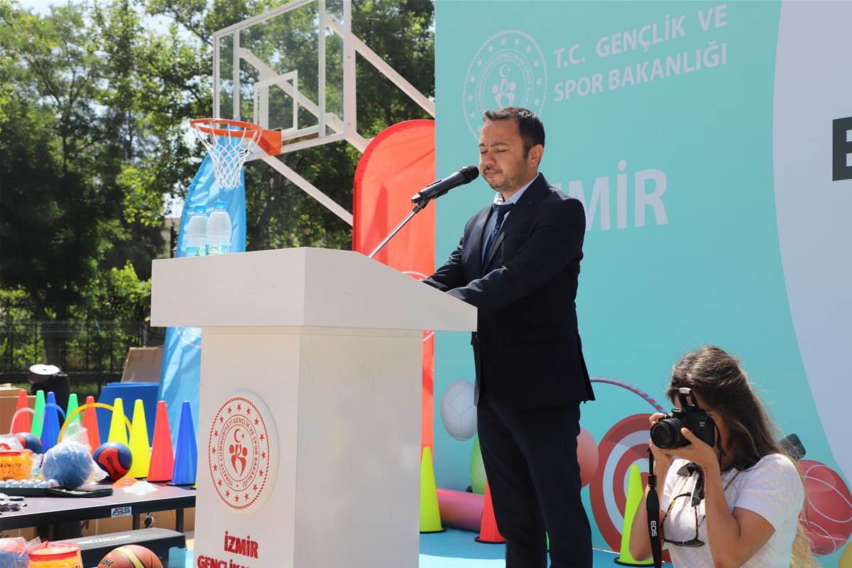 İzmir’e gelen tır içerisinde yer alan spor malzemelerimizi de burada düzenlenen tören ile 16 okulumuza teslim ediyoruz.Emeği geçen herkese teşekkür ediyorum.” dedi