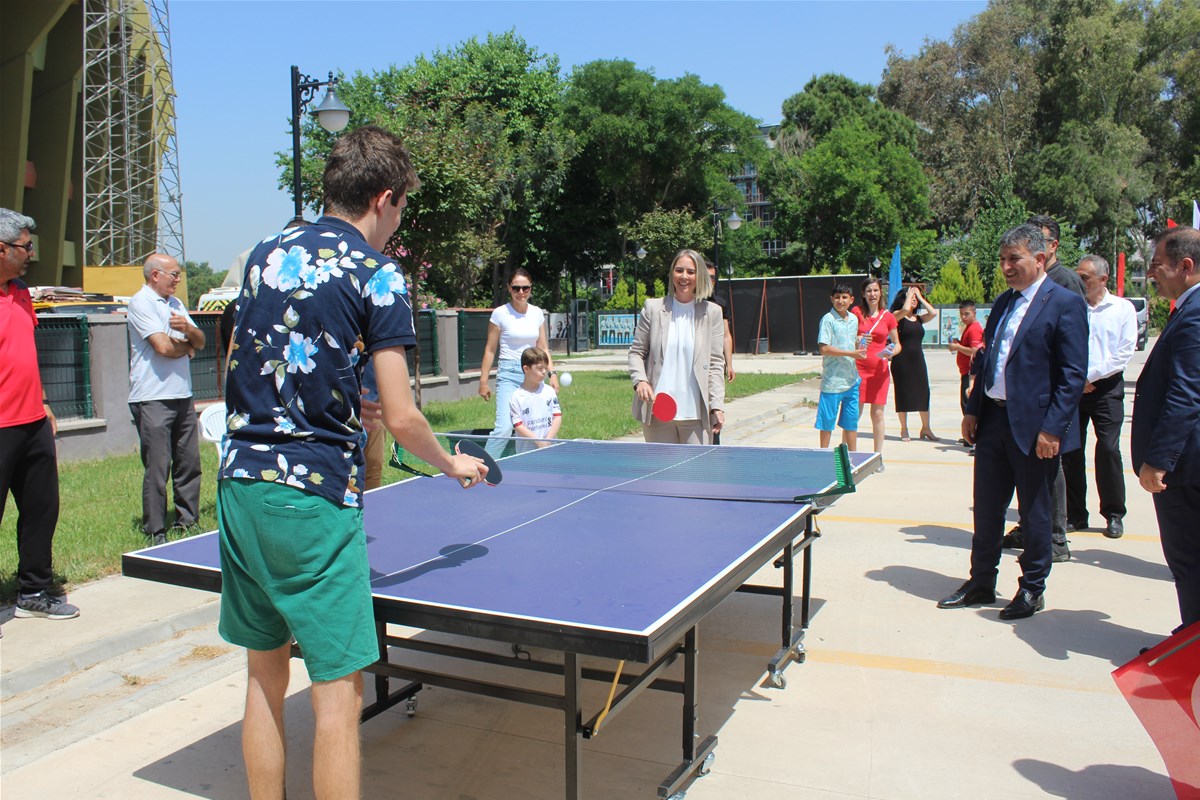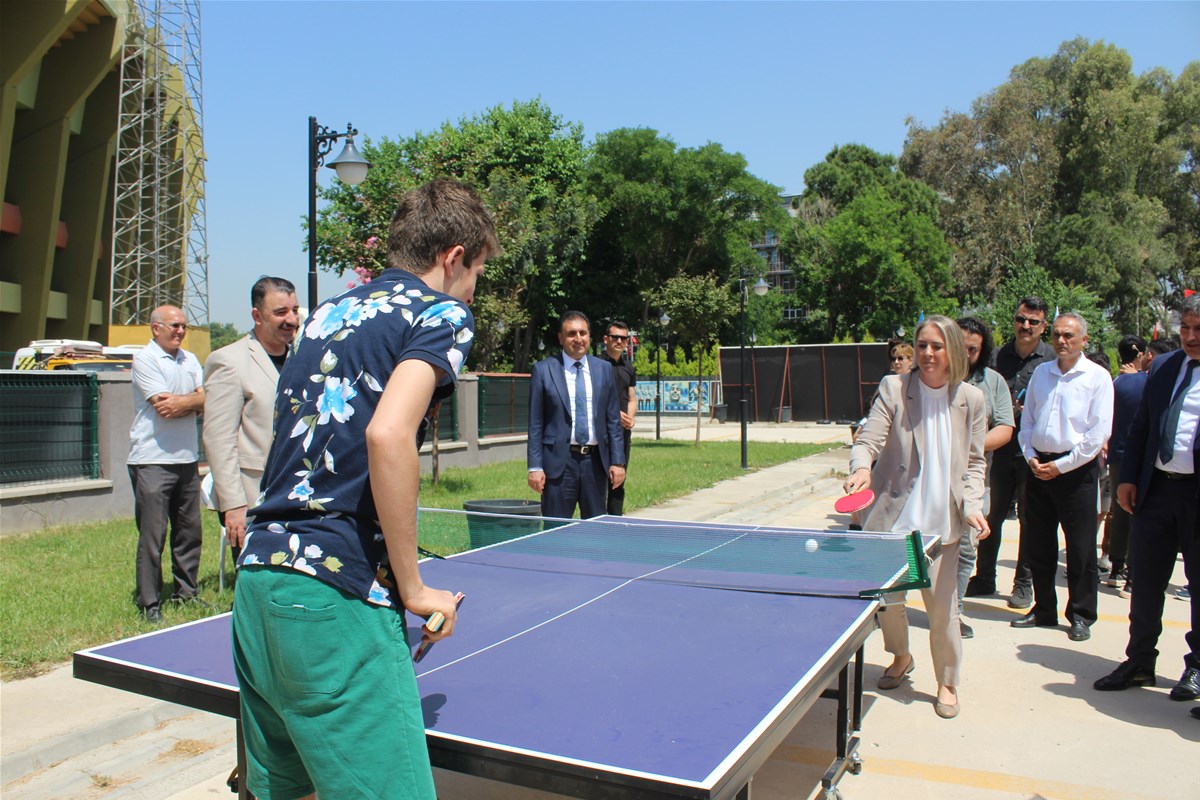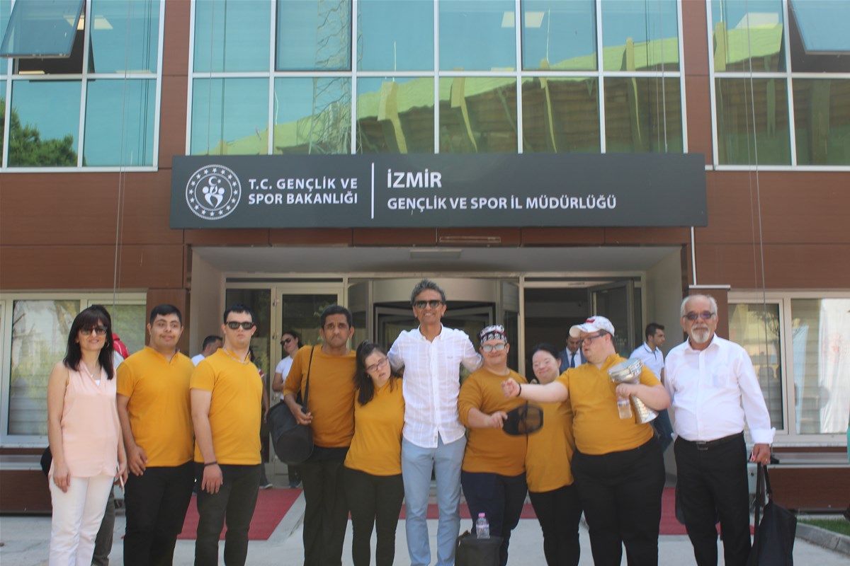 "Spor aşkı engel tanımaz" projesi çerçevesinde İzmir’deki özel eğitim okullarına spor malzemesi dağıtım töreni protokol konuşmalarının ardından ;